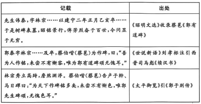 不同史籍有关郭泰的记载根据该表,能够被认定的历史事实是( )