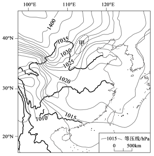 (1)北京时间12日20时前后,长三角地区比图中甲城( )